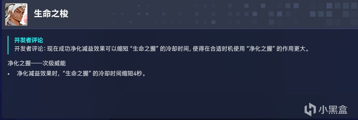 開發者評論: 現在成功淨化減益效果可以縮短“生命之握”的冷卻時間,使得在合適時機使用“淨化之握”的作用更大。