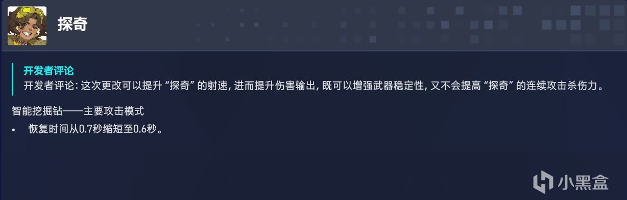 開發者評論: 這次更改可以提升“探奇”的射速,進而提升傷害輸出,既可以增強武器穩定性,又不會提高“探奇”的連續攻擊殺傷力。