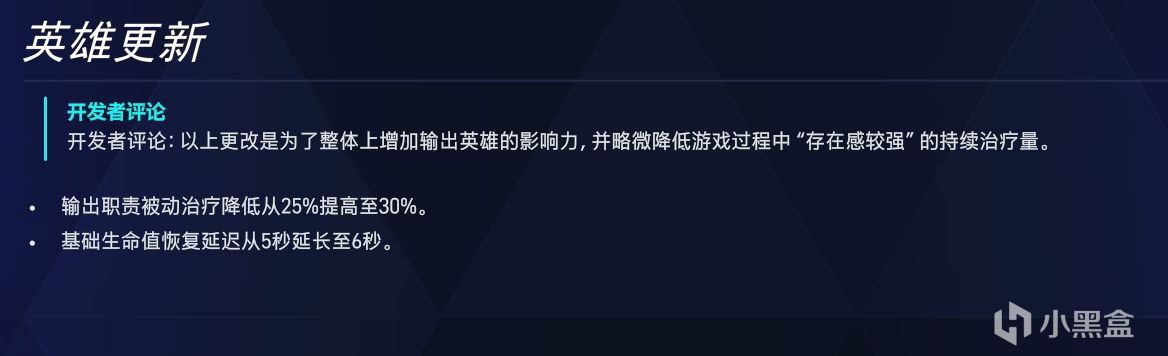 開發者評論: 這些改動旨在普遍提升輸出英雄的影響力,並略微降低在即時對抗中感受到的治療續航能力。