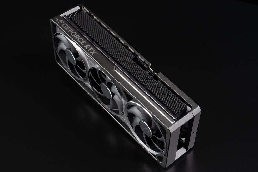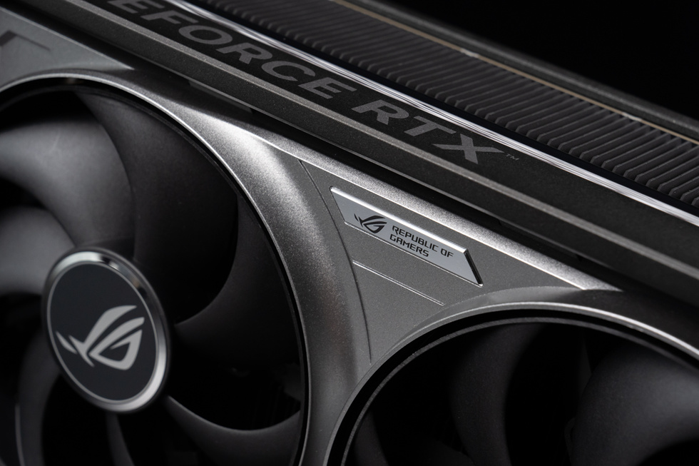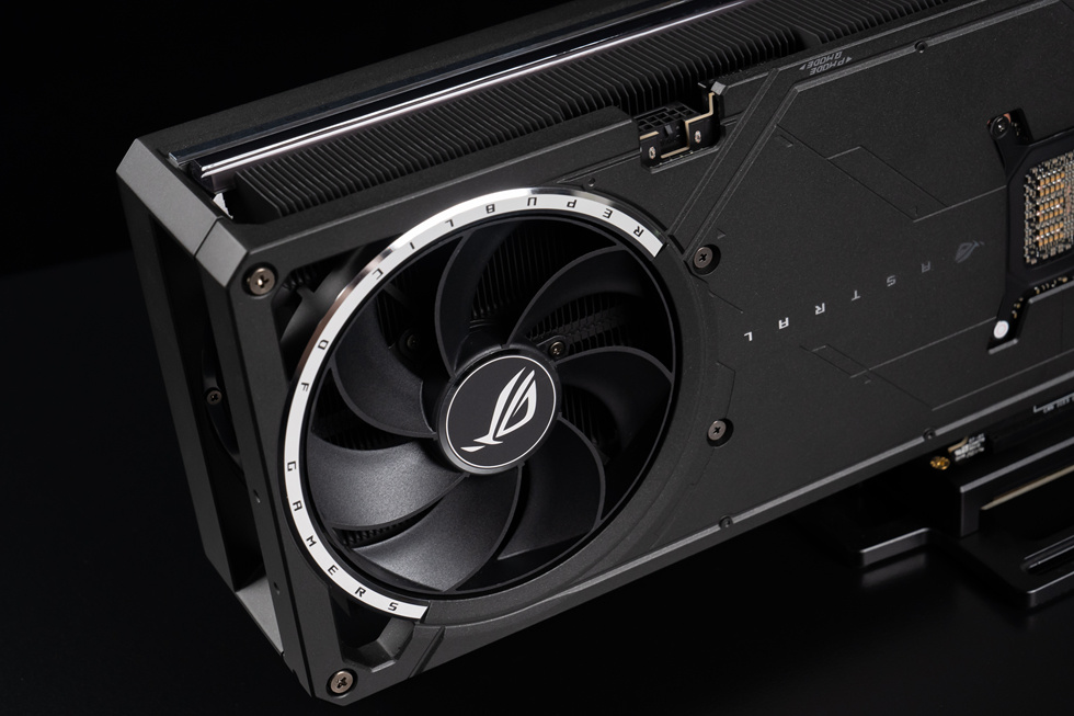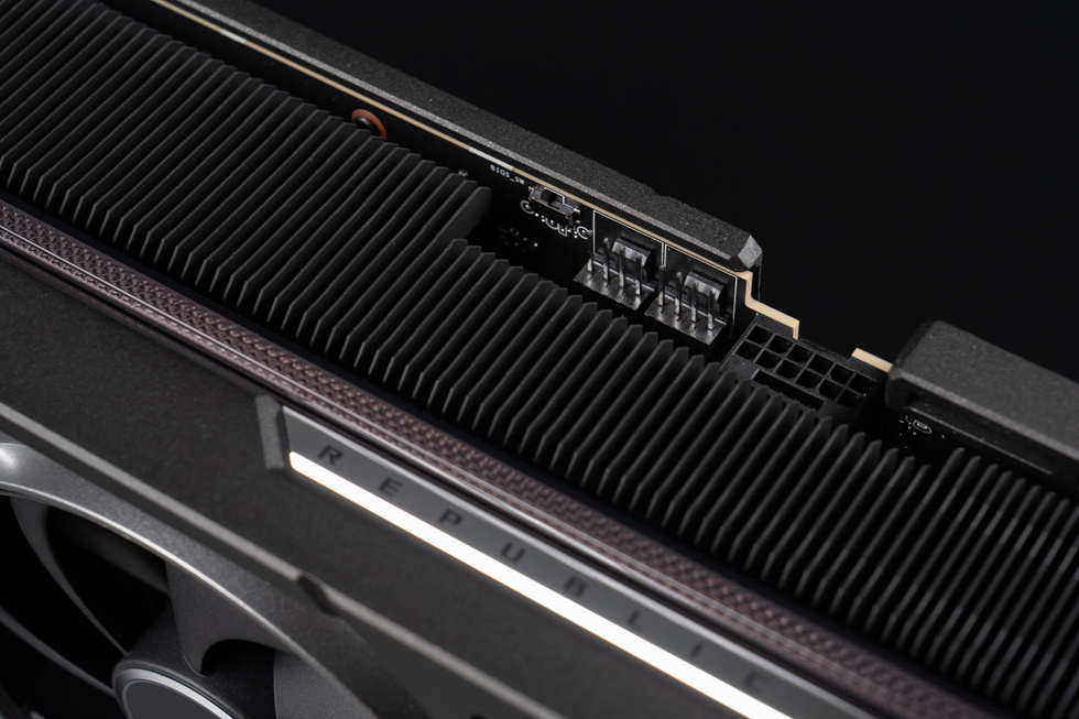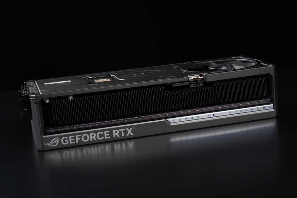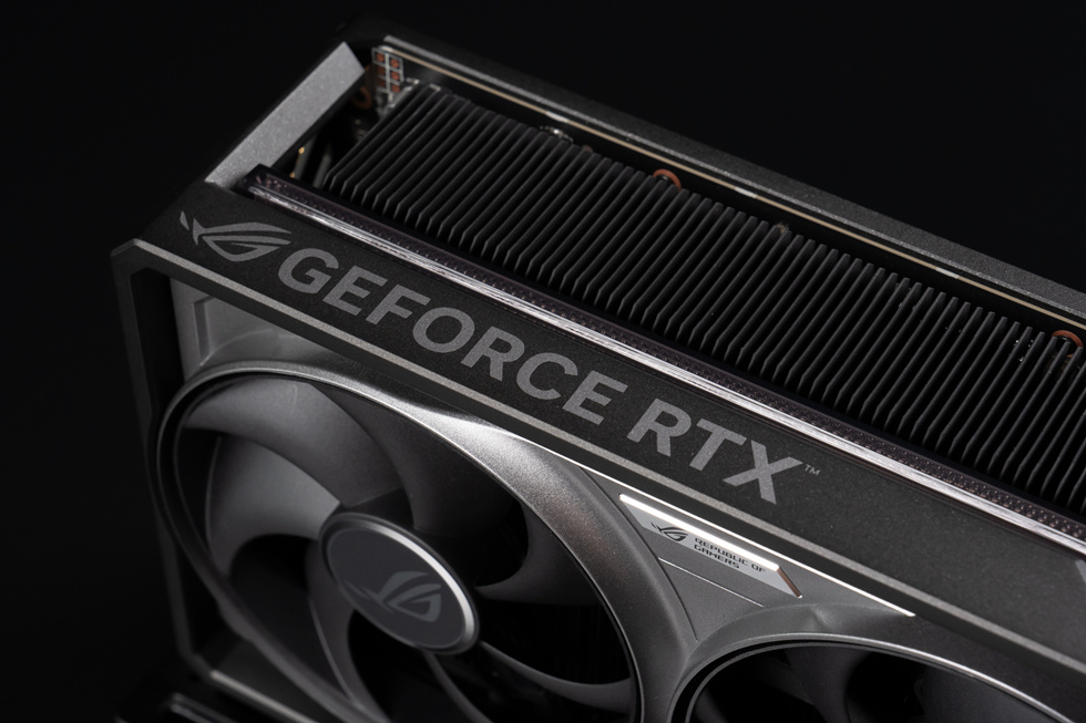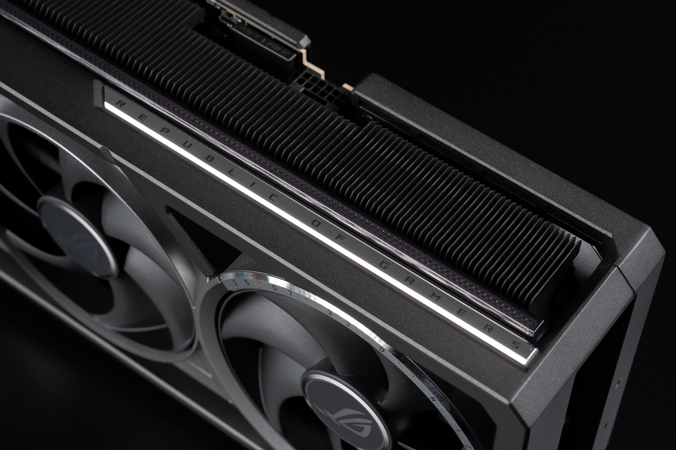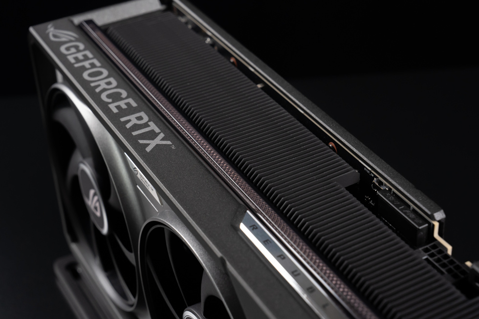 顯卡左側爲ROG LOGO“GEFORCE RTX”標識。