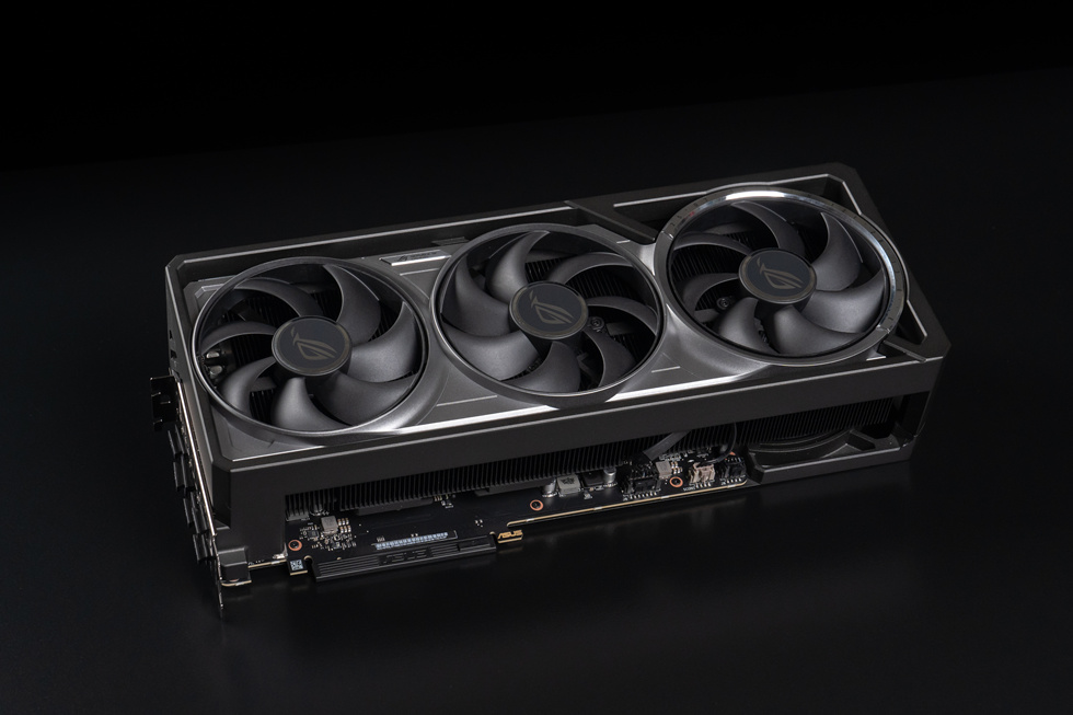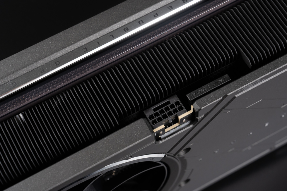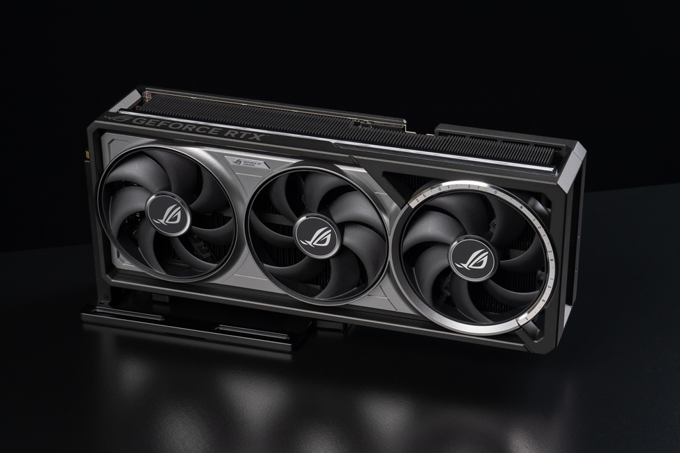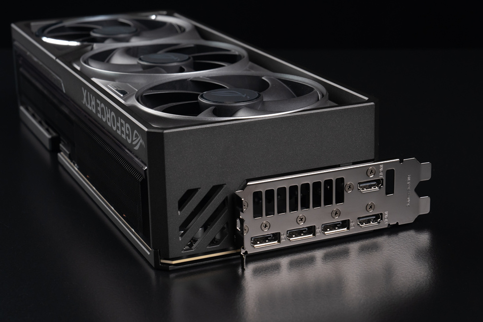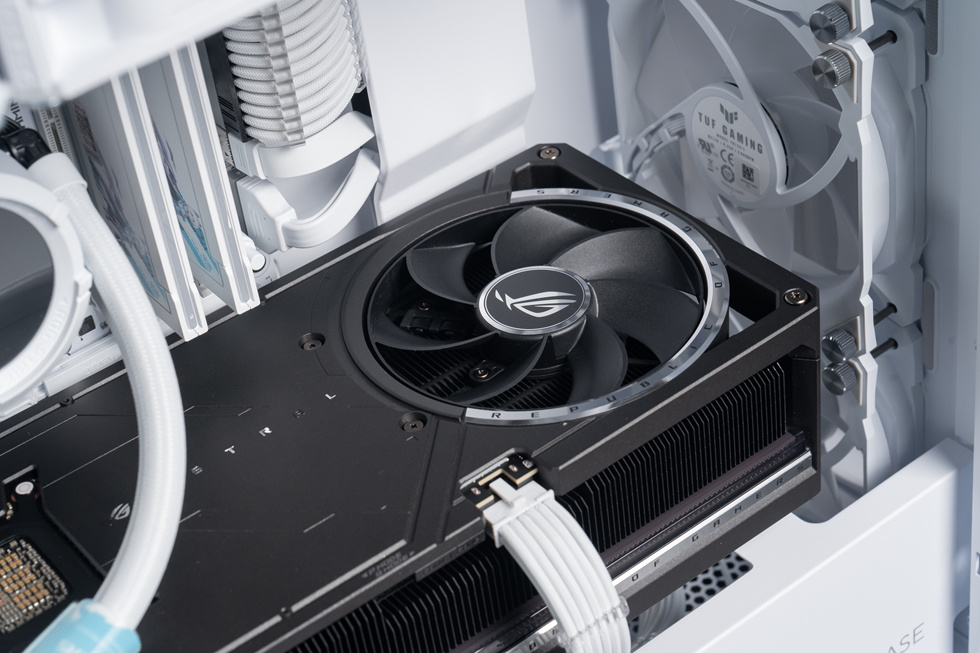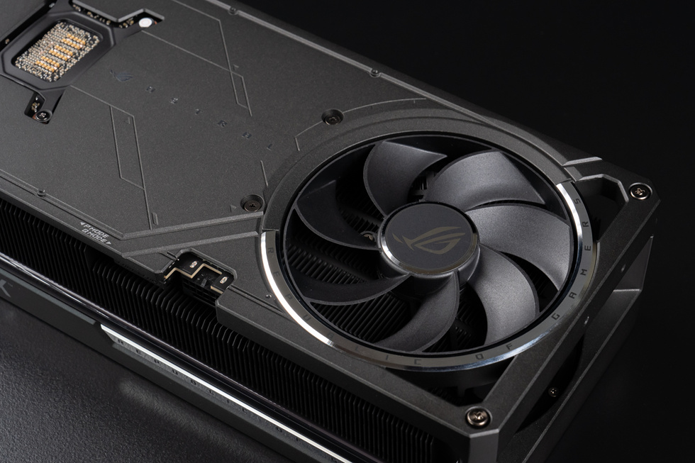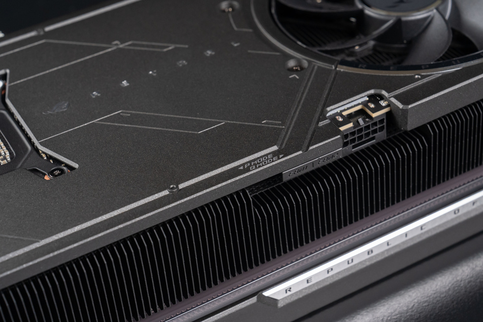 顯卡左側爲ROG LOGO“GEFORCE RTX”標識。