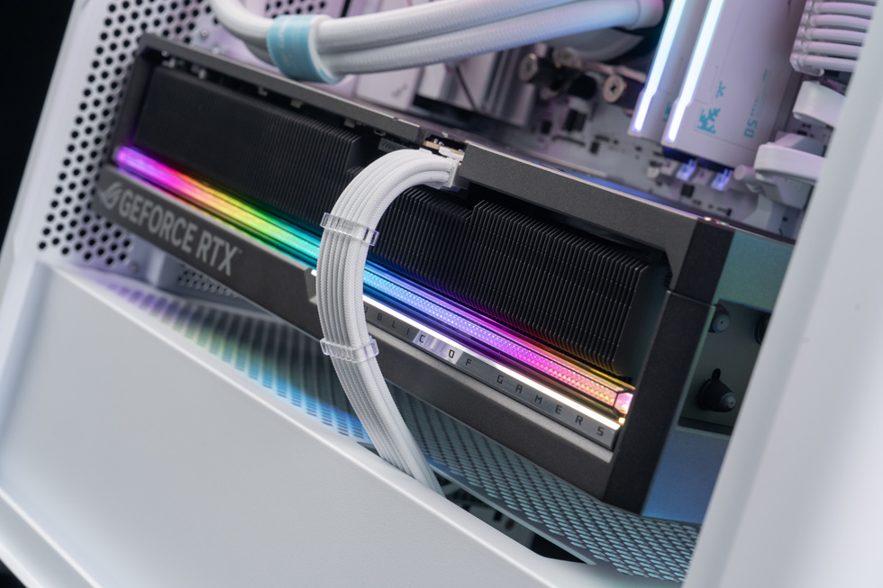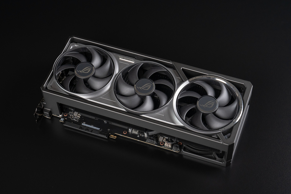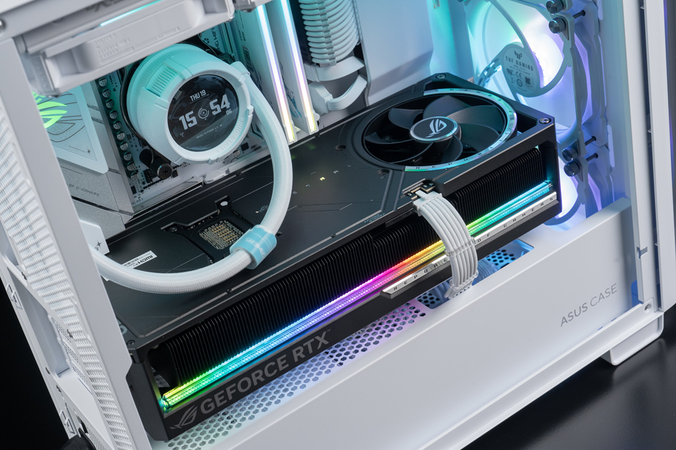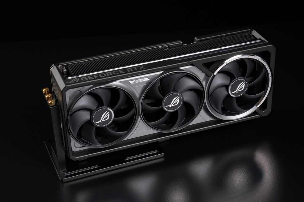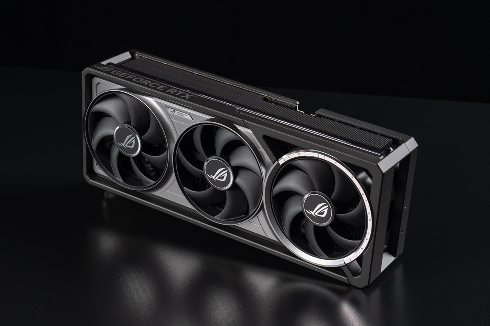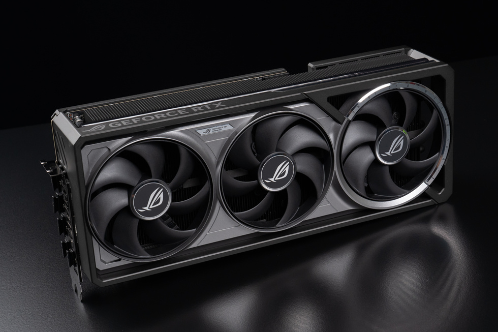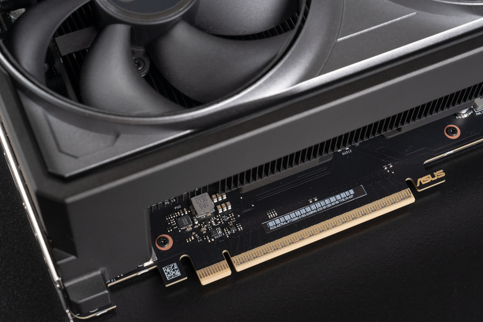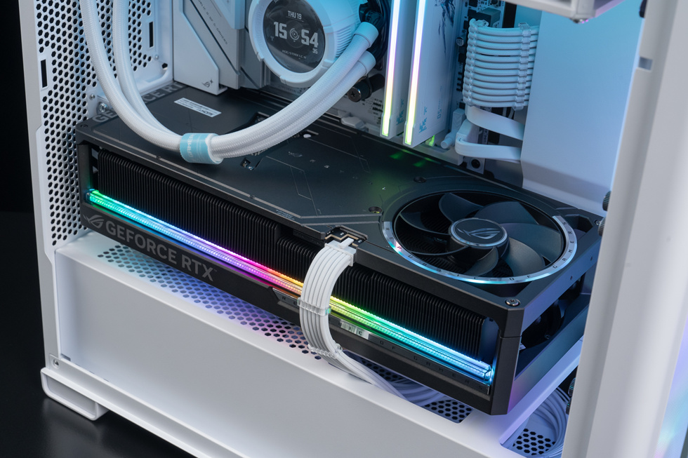 顯卡左側爲ROG LOGO“GEFORCE RTX”標識。