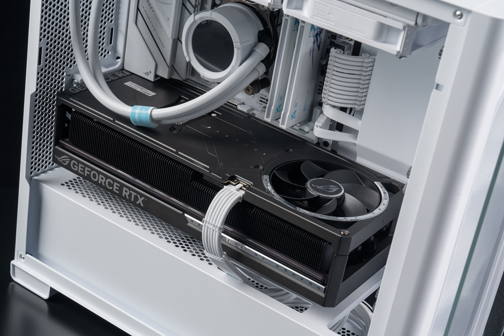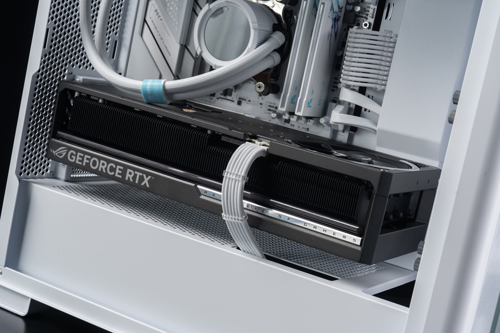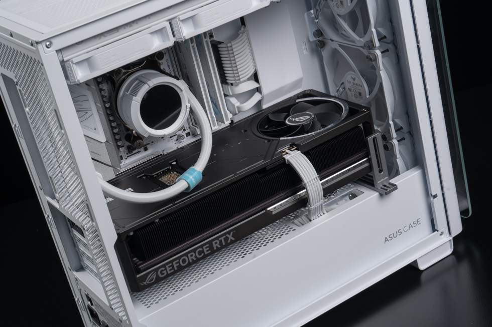 ASUS GPU Guard技術使用點膠固定所有四角,以減少破裂風險,搭配顯卡GPU支架有助於確保安裝壓力均衡分佈,確保顯卡穩定安全。