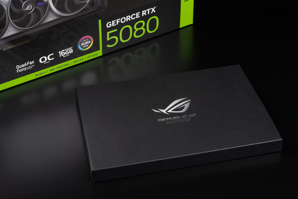 包裝依然是華碩經典的旗艦設計,相同的佈局,不同的是採用了黑白相間的設計,左邊爲夜神5080渲染圖,右邊爲產品名稱與型號。