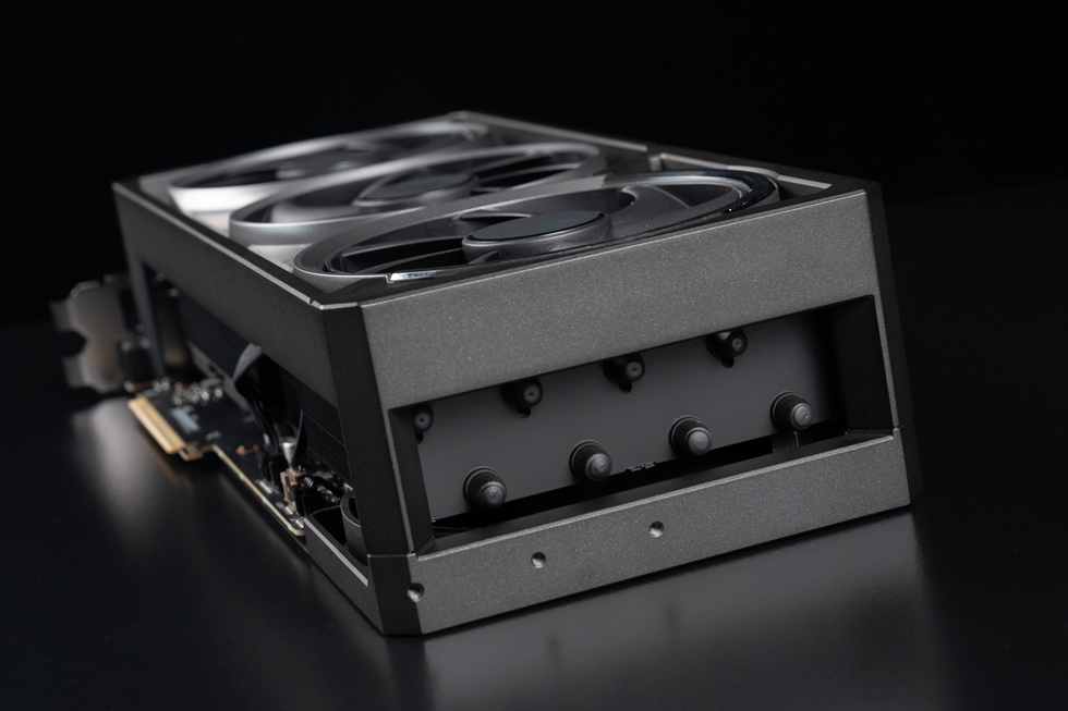 整卡採用8熱管+真空腔均熱板+MaxContact鏡面直觸技術,搭配3.8槽超大散熱鰭片保證其優秀的散熱能力。