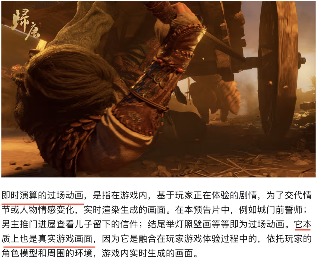 官方还进一步更贴心地说明,即时演算的过场动画,本质上也是真实游戏画面,以免一些不了解游戏行业惯例的玩家误解。