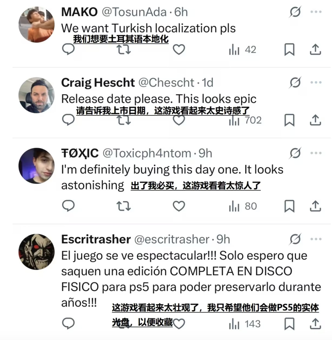 可能是出于高调做事、低调做人的考虑,官方特意选择了一些在国外社交网络上转发和评论量不高的外国玩家评论翻译成中文,既方便国内玩家了解局面,又避免热度过高、引发不必要的麻烦。