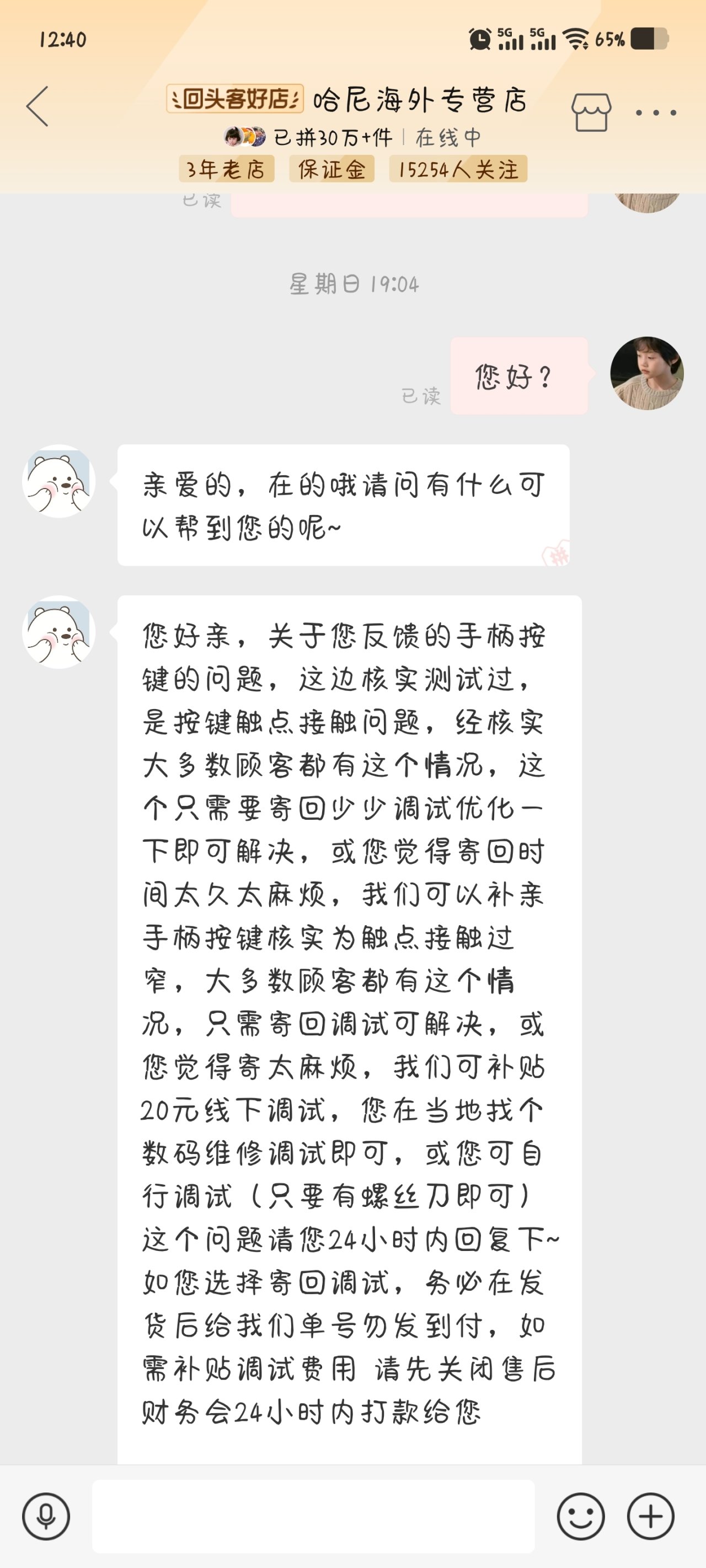 之后我也是第一时间去找了店家,不过店家给到的解决办法也只是给我补20块钱让自己修,或者寄回去他给我修,考虑到下个星期还要出去旅游想带Switch2的问题,当时也是一时间有些犹豫