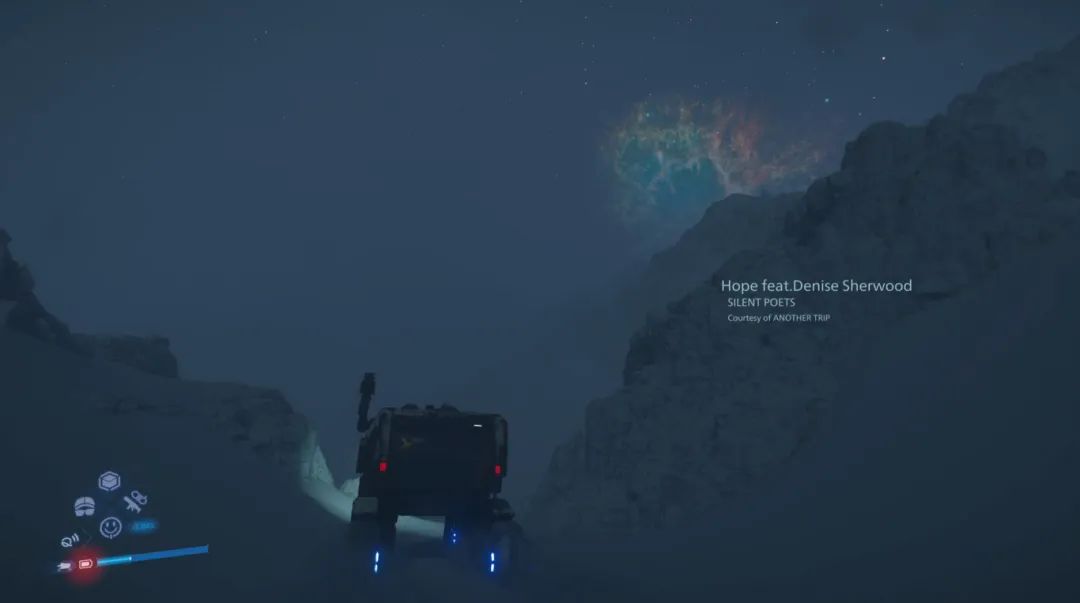 在此之上,每一处区域,他几乎都塞上了堪称“奇观”、我曾经无法想象的的美景。我曾目睹“陨石”砸在车轮的边缘燃起烈火,我看过太阳撕开云层如同飞蛾的扑火,无意中抬头,我见到极光与星空在黑暗中明灭闪耀。所有这些瞬间,都融入在我每一次送货的旅程中,一如出自本能的感动落在脑海泛起涟漪。