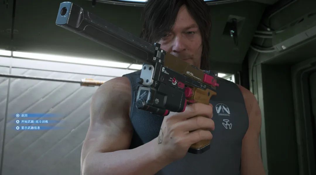 但是,不用担心太难,瞭望塔性能大幅加强,不仅是货物,现在可以直接标出范围内的所有人敌人,并且在屏幕上方提示敌人总数,玩家可以很方便地观察敌人动态。山姆的性能也获得了极大加强,新增Venom Snake同款子弹时间,还更长,被发现后可以直接掏枪反杀。近身格斗方面,除了前作已有的飞膝、飞扑与绞合线招架,新增了格挡与反击,可以正面硬抗对方的近战攻击,绞合线招架也增加了子弹时间降低难度,VR任务中甚至让你一个打十个,就差个CQC的QTE小连招了。可以说,现在的山姆基本就是SNAKE。不信?你看山姆的小手枪,和《合金装备》1&2中的SOCOM MK23几乎一摸一样,官方明示了属于是。