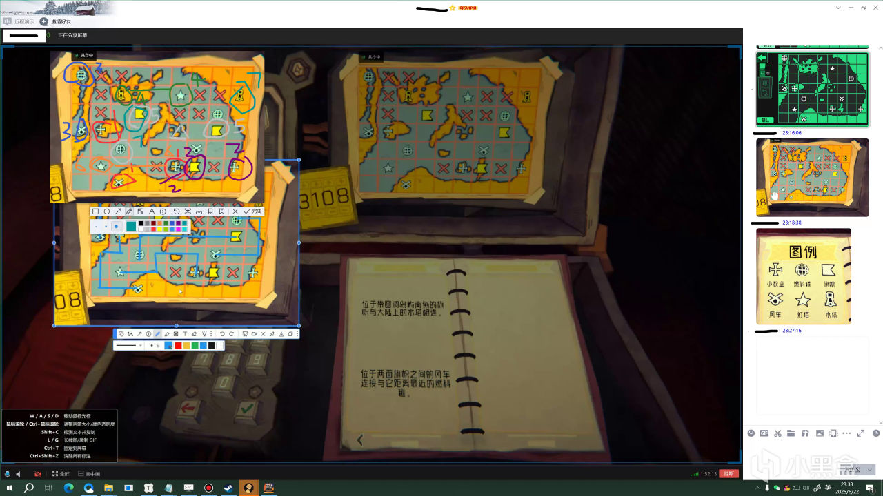 在某关的地图标记上,他觉得直接标就行,而我认为要先采用排除法,两人拿着画图工具比试,谁也不服谁。
