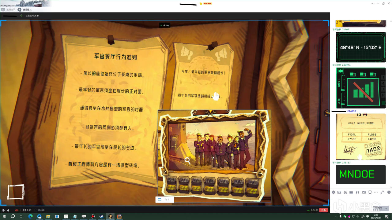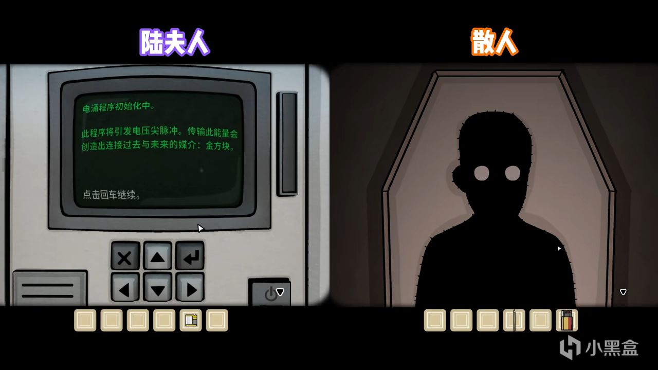 游戏的谜题难度接近《密室逃脱模拟器》,甚至更难些,尤其适合喜欢烧脑解谜合作的玩家。我们两个都不是解谜高手,所以中途直接启动了屏幕共享,由潜水艇兄弟展示画面,主要是方便军师的推理。