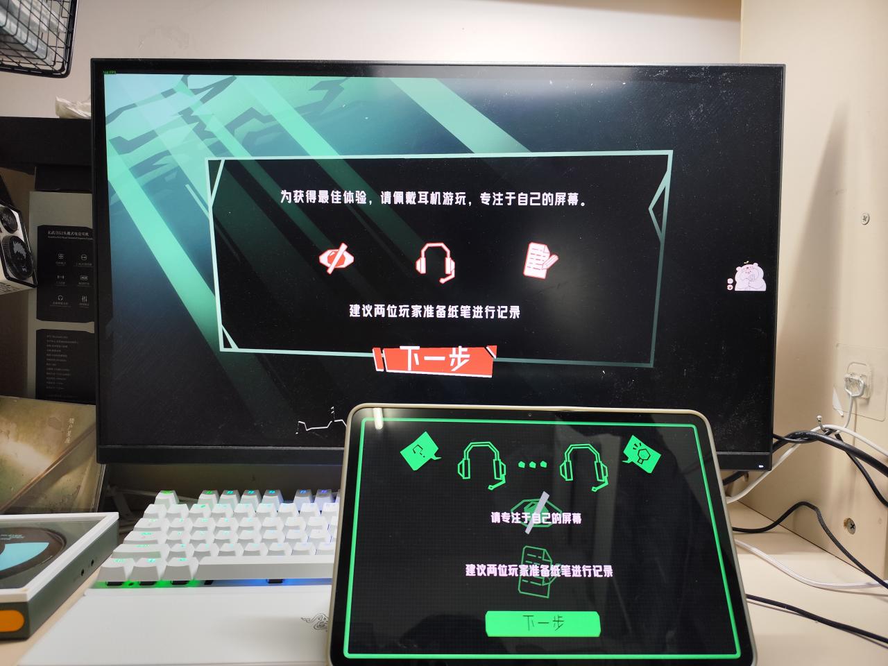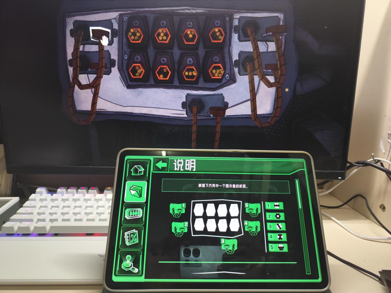 这款游戏并不是简单地将线索和谜题分开放在两台设备,操作部分也并不是一直由电脑玩家完成。