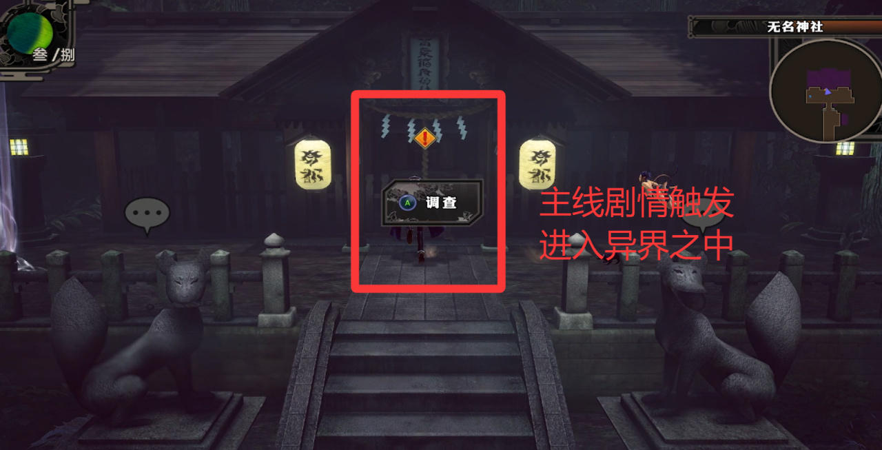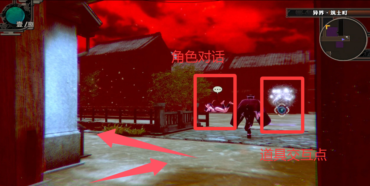 之后我们回到这里,然后在图中所示位置与主线剧情交互即可,也是玩家们第一次进入异界之中
