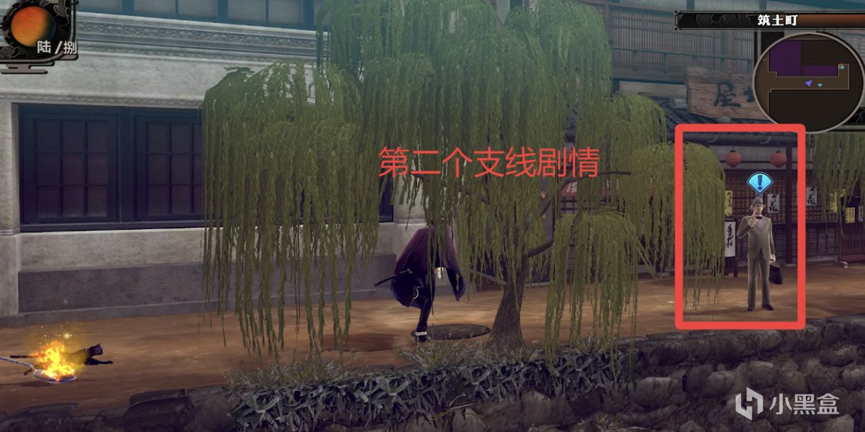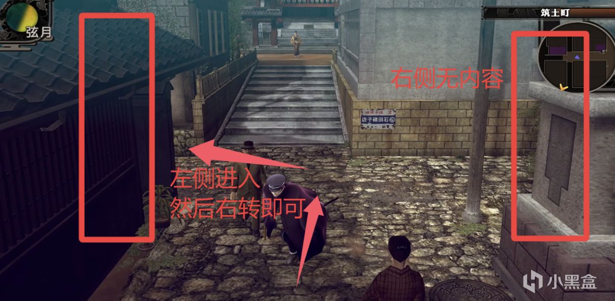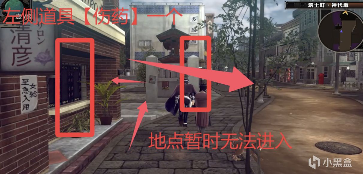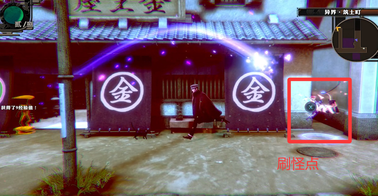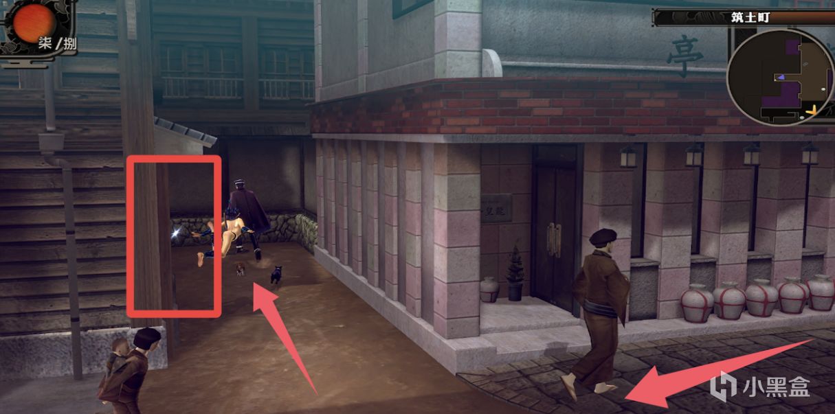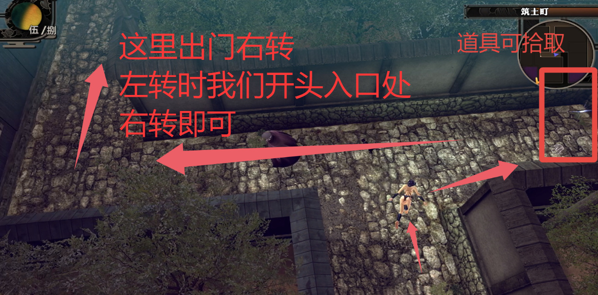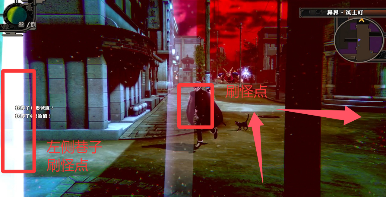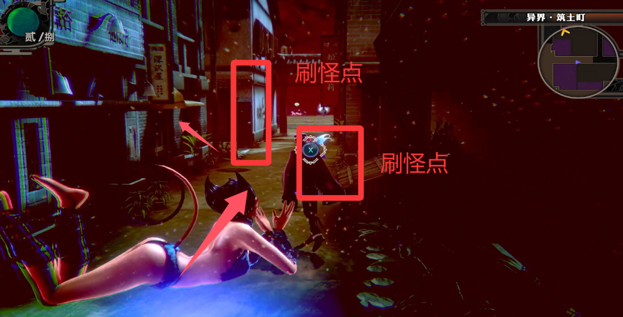 巷子里面两个刷怪点如图所示,我们清完怪之后先去左侧的小巷子分支,里面有个道具可以收集