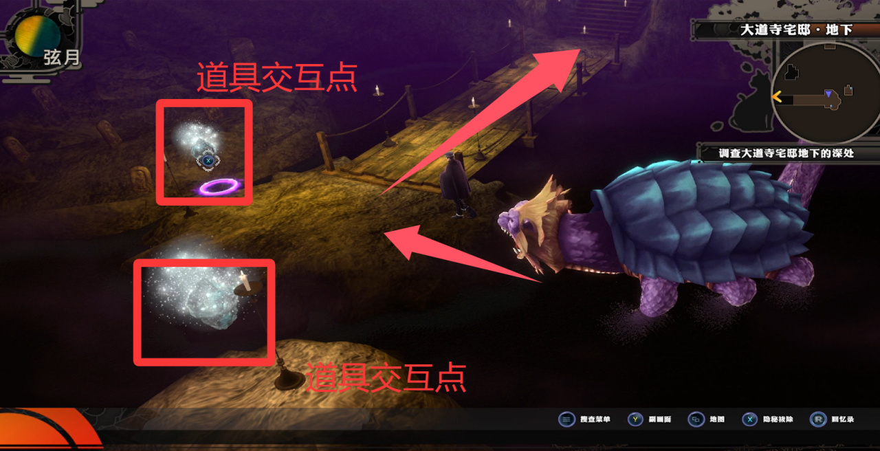 然后对话之后选择过岸,之后的两个道具交互点如图所示,拾取之后按照箭头的方向直接前进即可