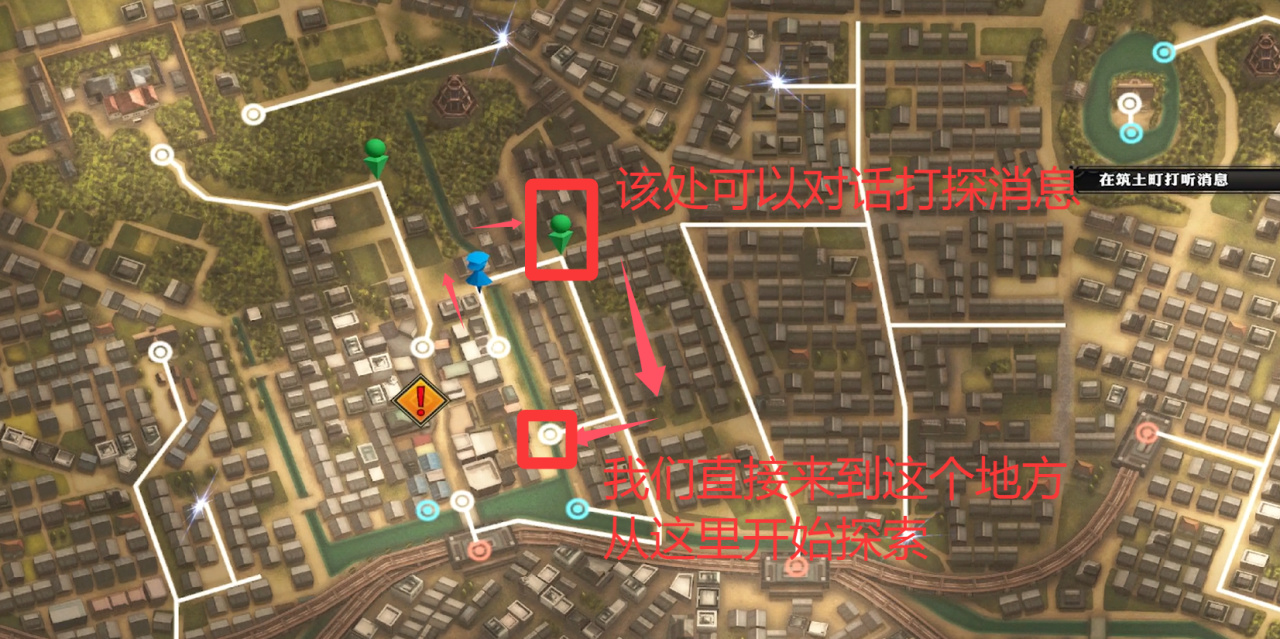 开局从事务所之中出来然后直接往右边走,通过如图所示的位置直接进入大地图模式。