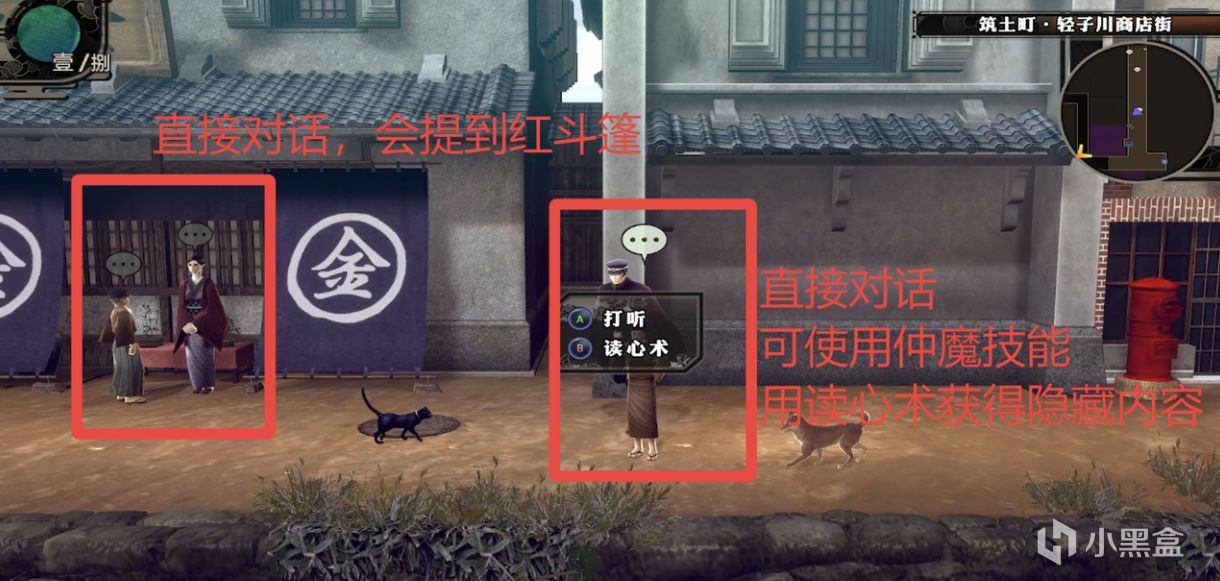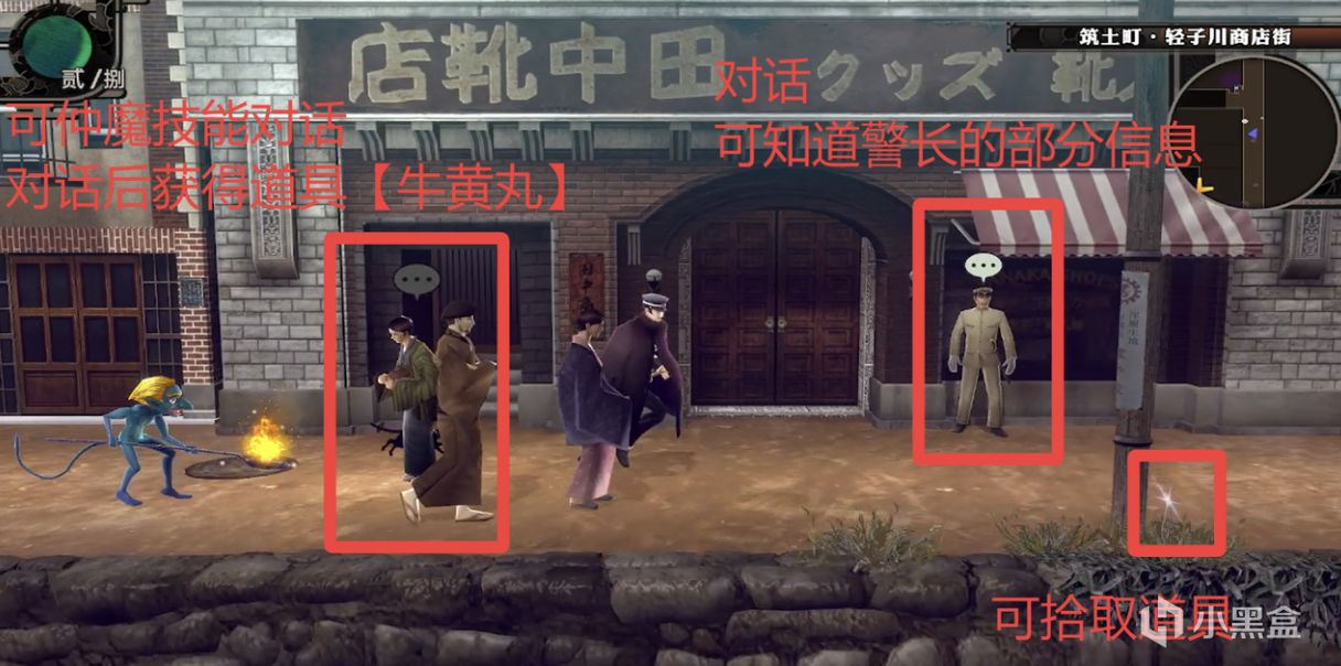 从金王屋出来之后可以和这里两个人先对话一下,部分NPC可以使用仲魔的技能获得隐藏对话,随便使用即可没啥负担而且NPC也看不到仲魔,咦这怎么可以本子领域展开了?