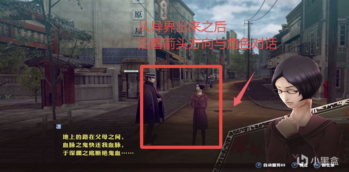 击败之后将会返回现实,这时候按照如图所示的箭头来到这里和NPC对话