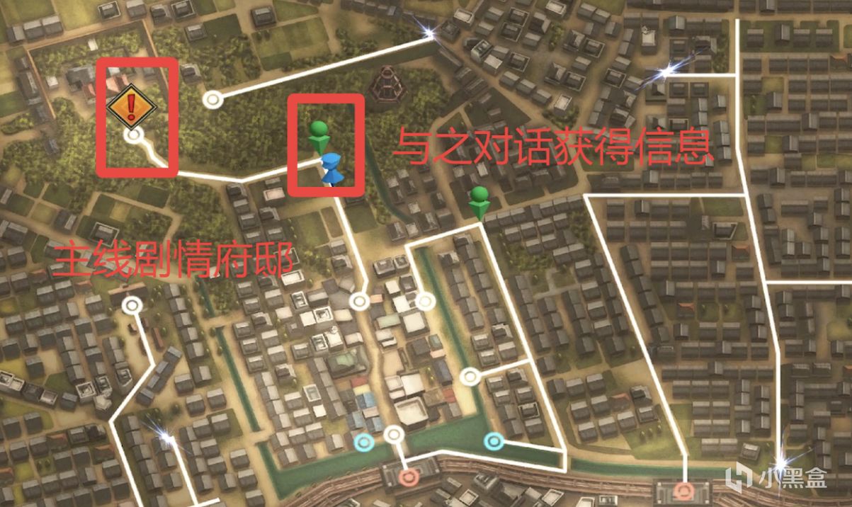 大地图模式之中信息如图所示,直接前往主线剧情的府邸即可触发下一阶段的主线剧情。