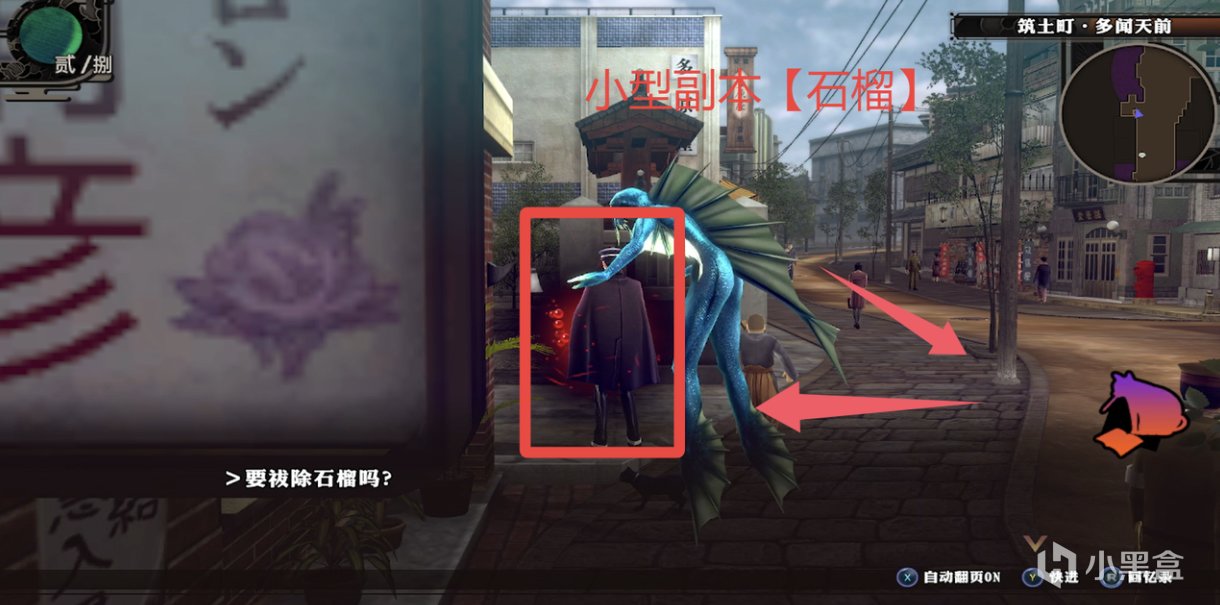 做完任务之后沿着箭头来到如图所示的地方,这里将会遇到小型副本【石榴】