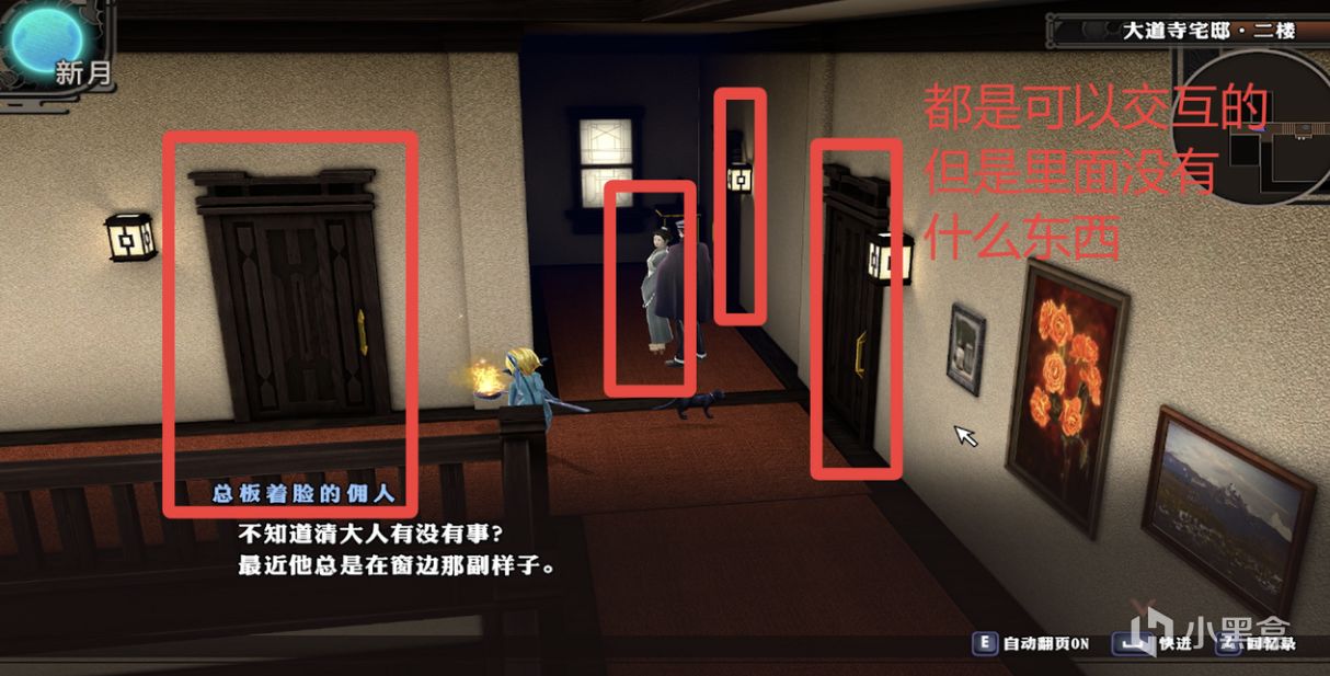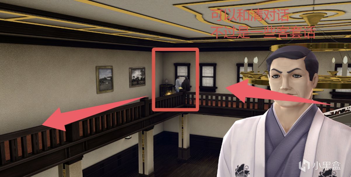 同时在二楼的窗台处可以和清对话,但是基本上都是客套话没啥含量,然后沿着如箭头所示的方向直走即可到达二楼最后的未探索区域