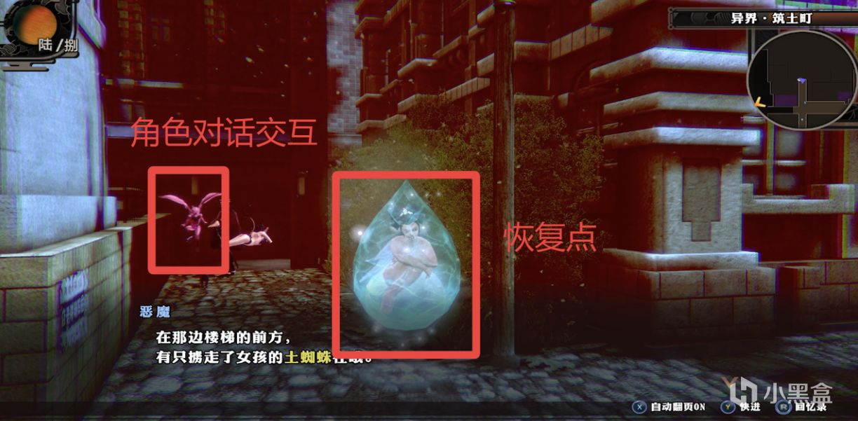 一路继续直行,前方NPC可对话并且使用仲魔技能,对话完成之后直接通过前方路口进入主线剧情之中