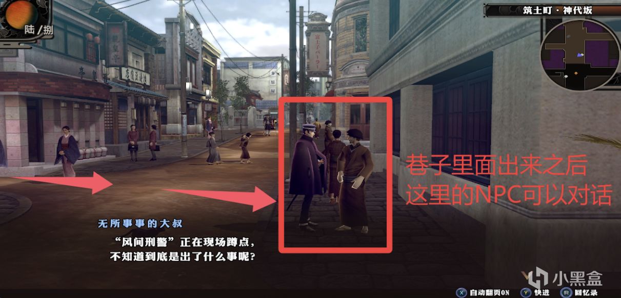 在巷子里面拾取完了道具之后,出来可以与巷子外面的NPC进行对话,继续获取各种情报信息