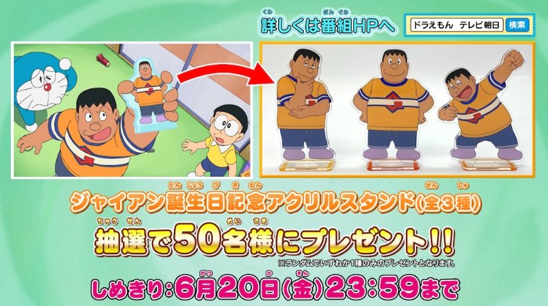 官方也是宣布在这一集播出后,将要抽取50位幸运观众送出动画同款的胖虎立牌。