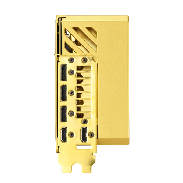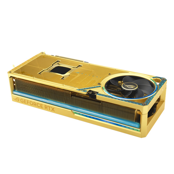 ROG Astral RTX 5090 Dhahab Edition的正面采用金色外壳,搭配祖母绿装饰,华硕表示,该显卡整体采用了6.5克的24K黄金镀层,也就是说显卡使用的黄金就价值约5000元(按照769.4元/克计算)。