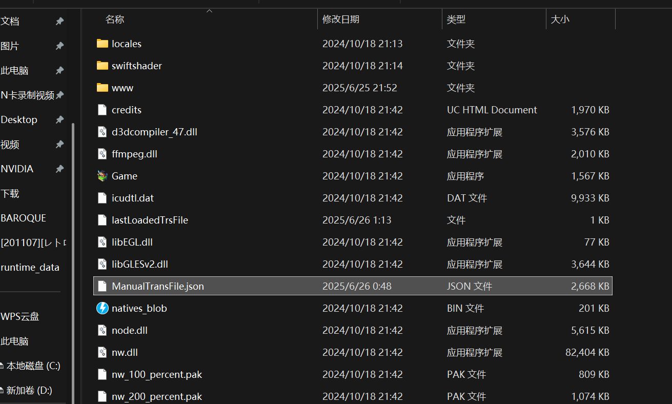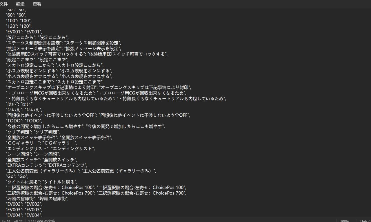 然後我們回到遊戲根目錄即可得到一份名爲“ManualTransFile.json”的文件。雙擊文件用記事本打開便能看到遊戲待翻譯的原文本。