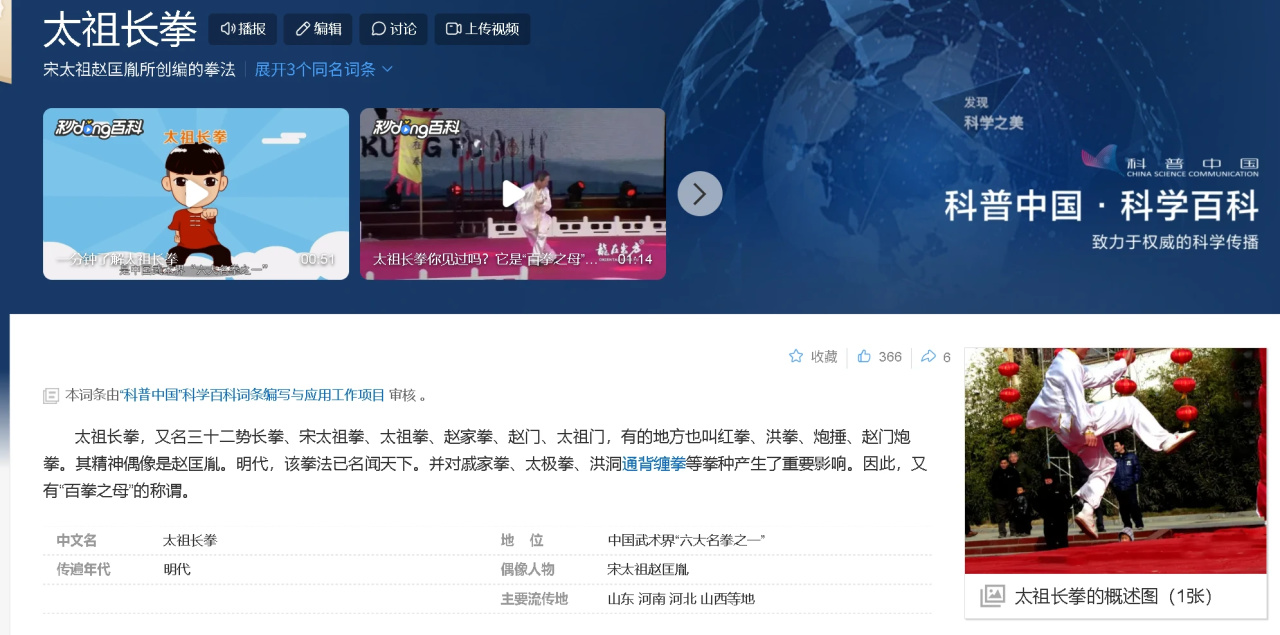 百科显示,太祖长拳的精神偶像是赵匡胤,相传是由赵匡胤开创的盘龙棍法与太祖长拳。