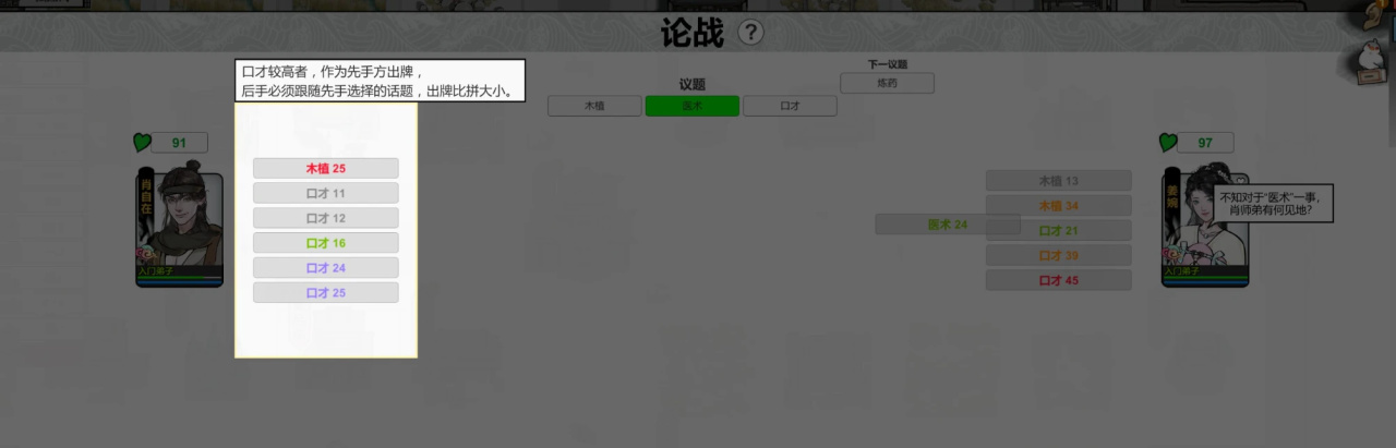 于是送礼,论战(论战玩法需要赢了才能赢得好感,是一种比种类比大小的打牌游戏)。