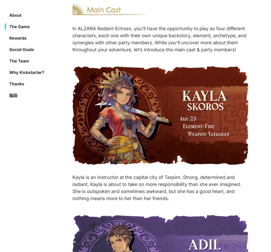 在他们的众筹页面里,众筹目标、游戏开发方向、角色介绍、发行平台、再到发售日期都一应俱全。