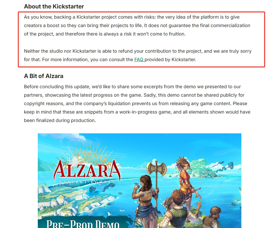 最近就有个叫《Alzara: Radiant Echoes》的游戏官宣跑路了。