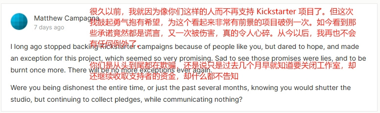 中止声明发布后,很多赞助者都在下面留言不会在这平台上资助任何的游戏了。
