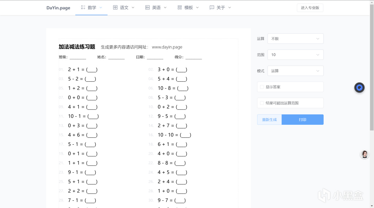 带娃神器:专为小学生定制,数学口算 / 语文组词 / 英语单词表一键生成,支持设置难度 + 显示答案。