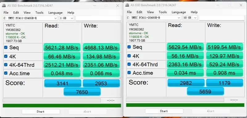 AS SSD Benchmark已有多年未更新,不太适合用来测试高性能的PCIe 4.0 SSD,这个成绩仅供参考。