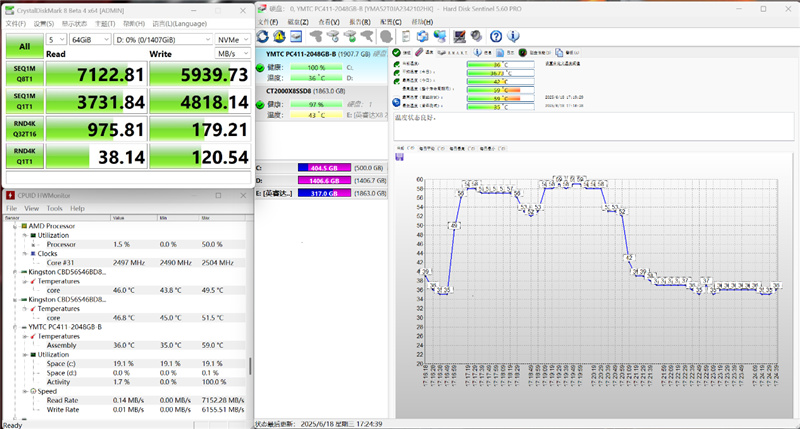 实测在进行高负载读写时,PC411 2TB SSD的最高温度也只有59度,所以温度问题是完全不用担心。