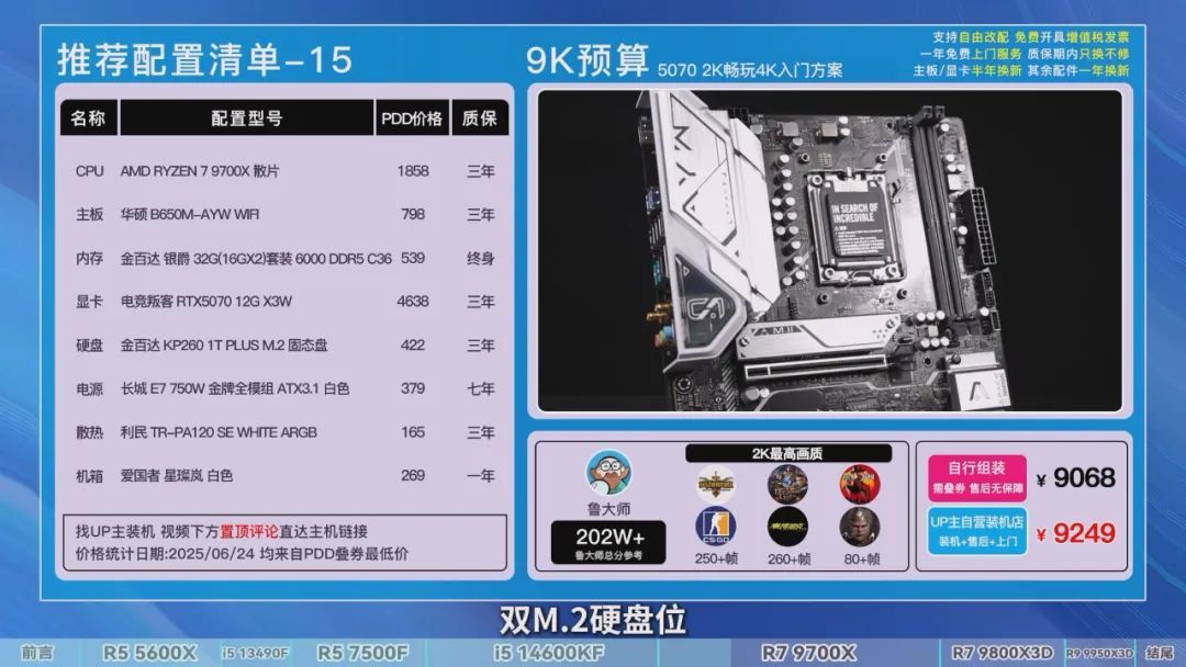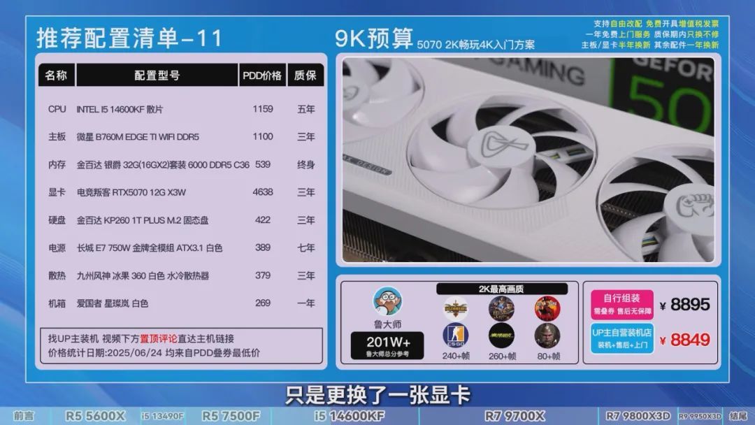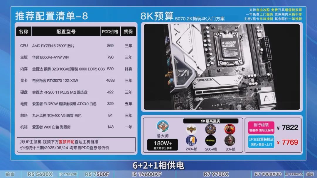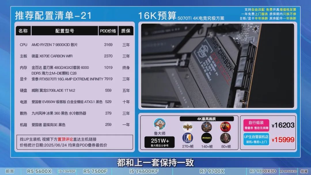 好了,以上就是本期和微论件七月主机配置的全部内容了,这次配置推荐我也进行了简化 直接把大家最关心的CPU和显卡写出来 每个推荐下面也贴了配置图 如果有哪套配置想要了解的更多一点可以观看我们原视频哦~