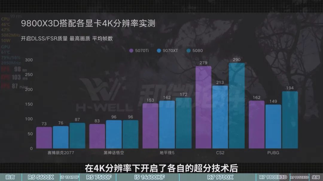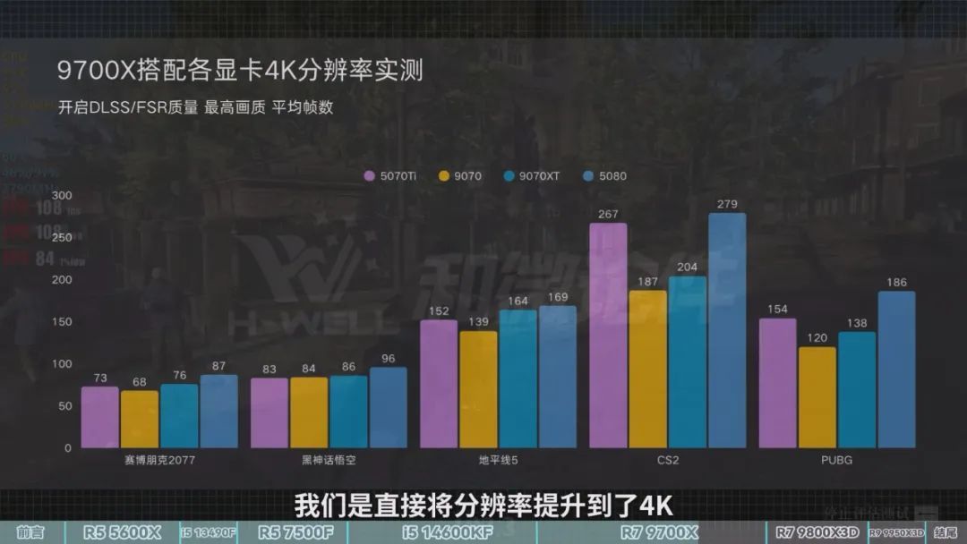 9800x3d搭配各显卡4k分辨率下帧数实测