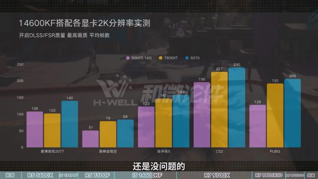 14600KF搭配各显卡2K分辨率实测 开启dlss/fsr质量