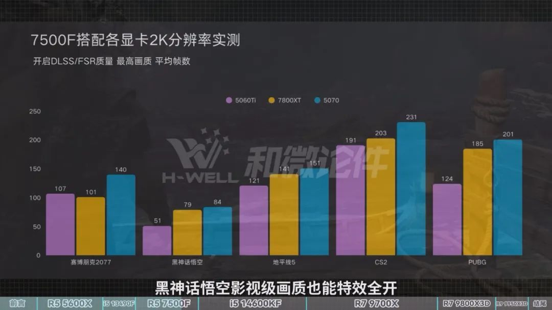 7500F搭配各显卡2K分辨率实测 开启dlss/fsr质量