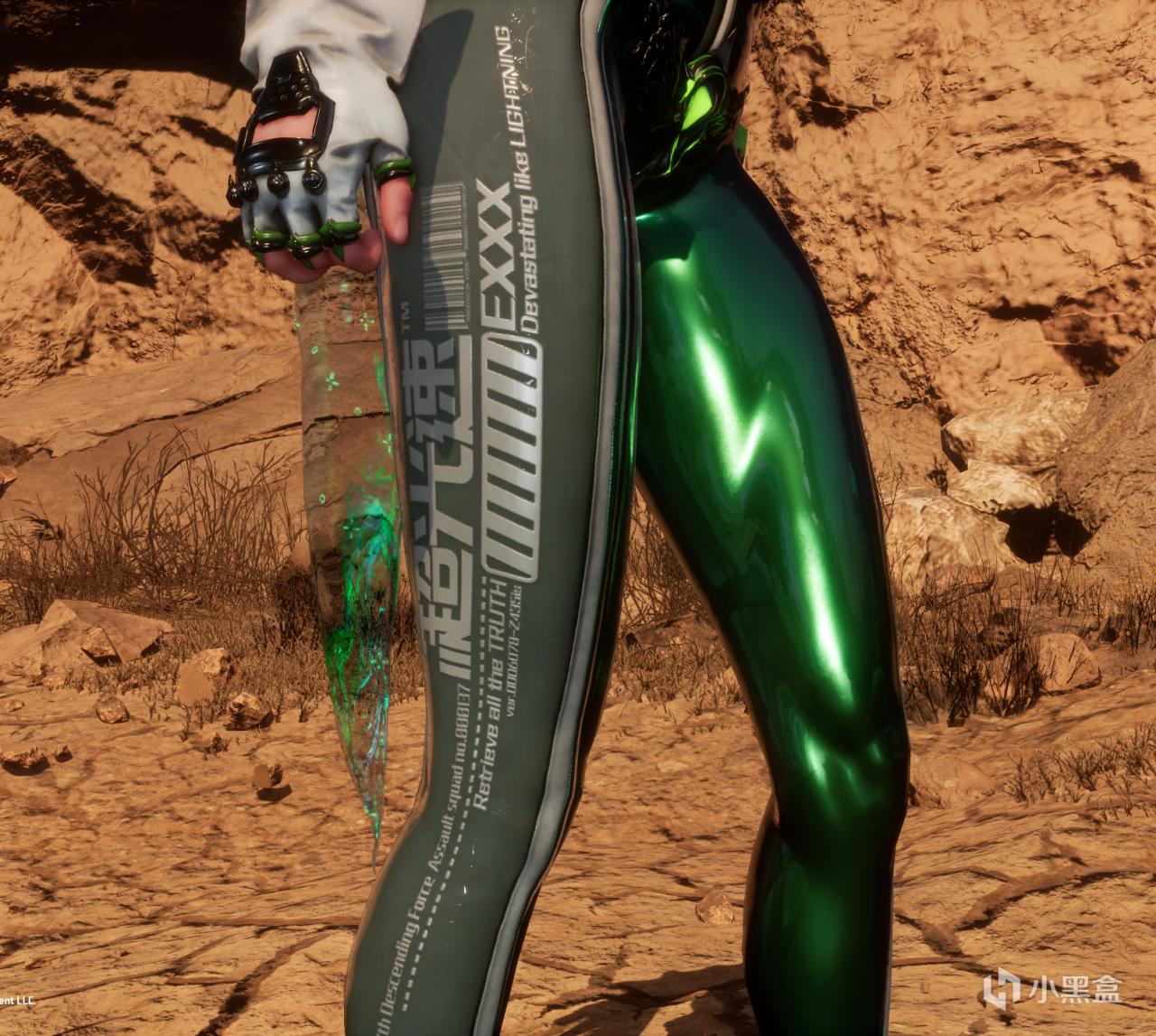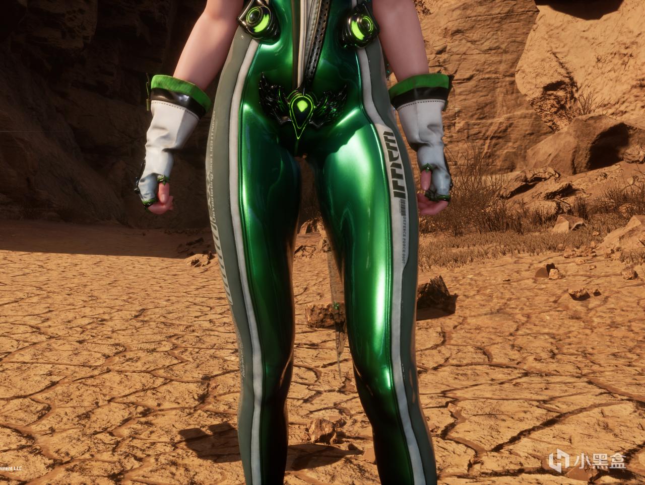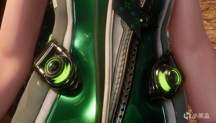 首先最顯而易見的,綠色電鍍反光的褲衩部分,和伊芙的緊身褲內側遙相呼應: