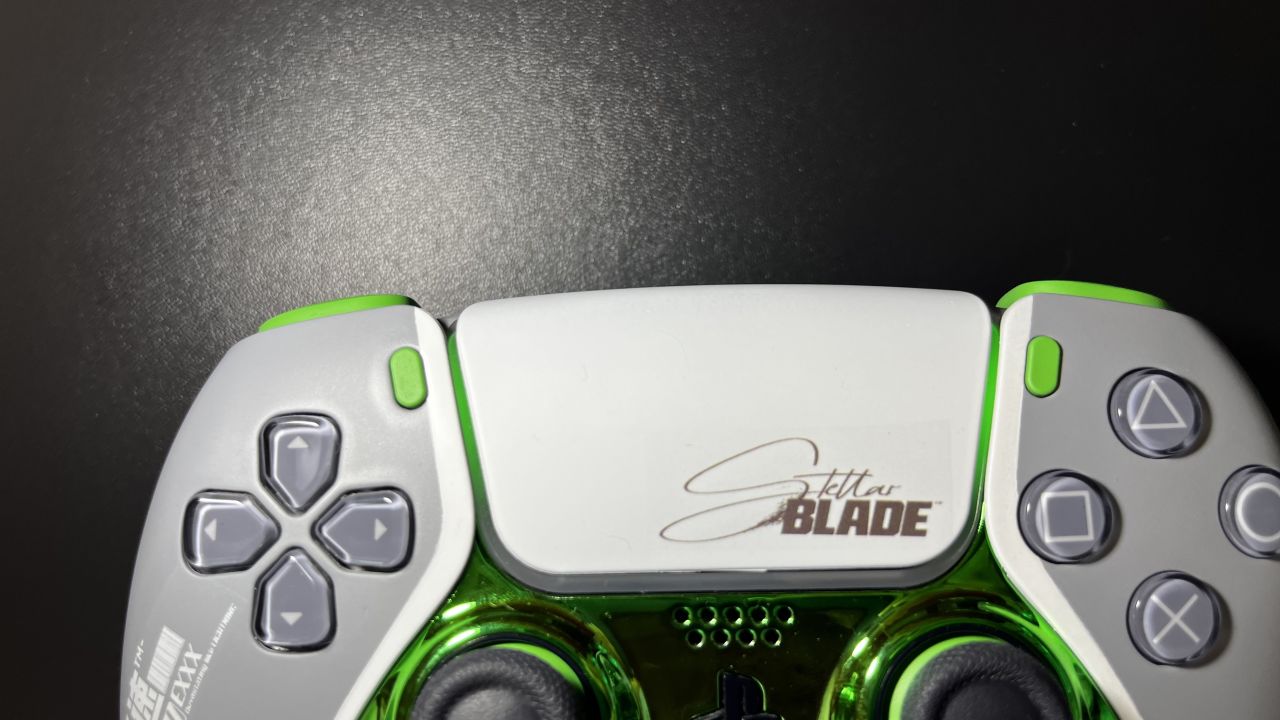 前段時間我在reddit論壇上偶然看見了用戶@r/stellarblade自己diy的劍星PS5手柄(官方名稱Dualsense™),他本人也是專注於劍星社區的大神,他原來的效果圖是這樣(原文鏈接:https://www.reddit.com/r/stellarblade/comments/1fynnx6/my_custom_sb_controller/)