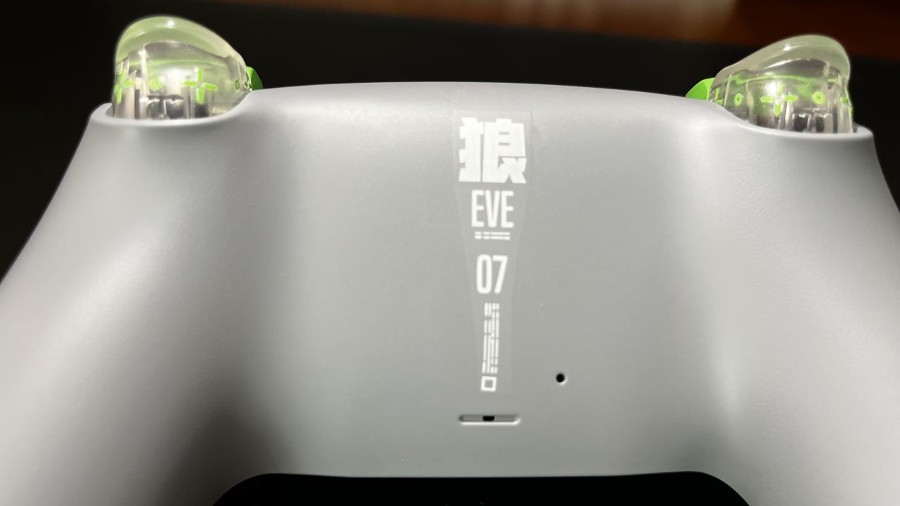 手柄背面考慮到實用性,我採用了比較低調的全灰色噴塗,並且印上了伊芙背後標誌性的“狼eve07”的文字:
