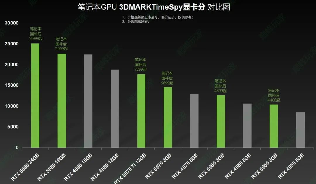 最新的RTX 50系笔记本GPU TS显卡分对比图(概数统计,仅供参考)