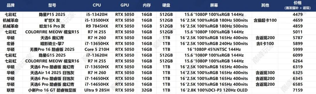 最新的RTX 5050笔记本已上市机型价格统计表(持续增加中……)
