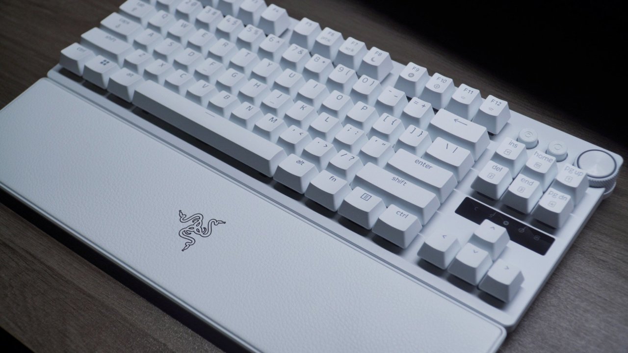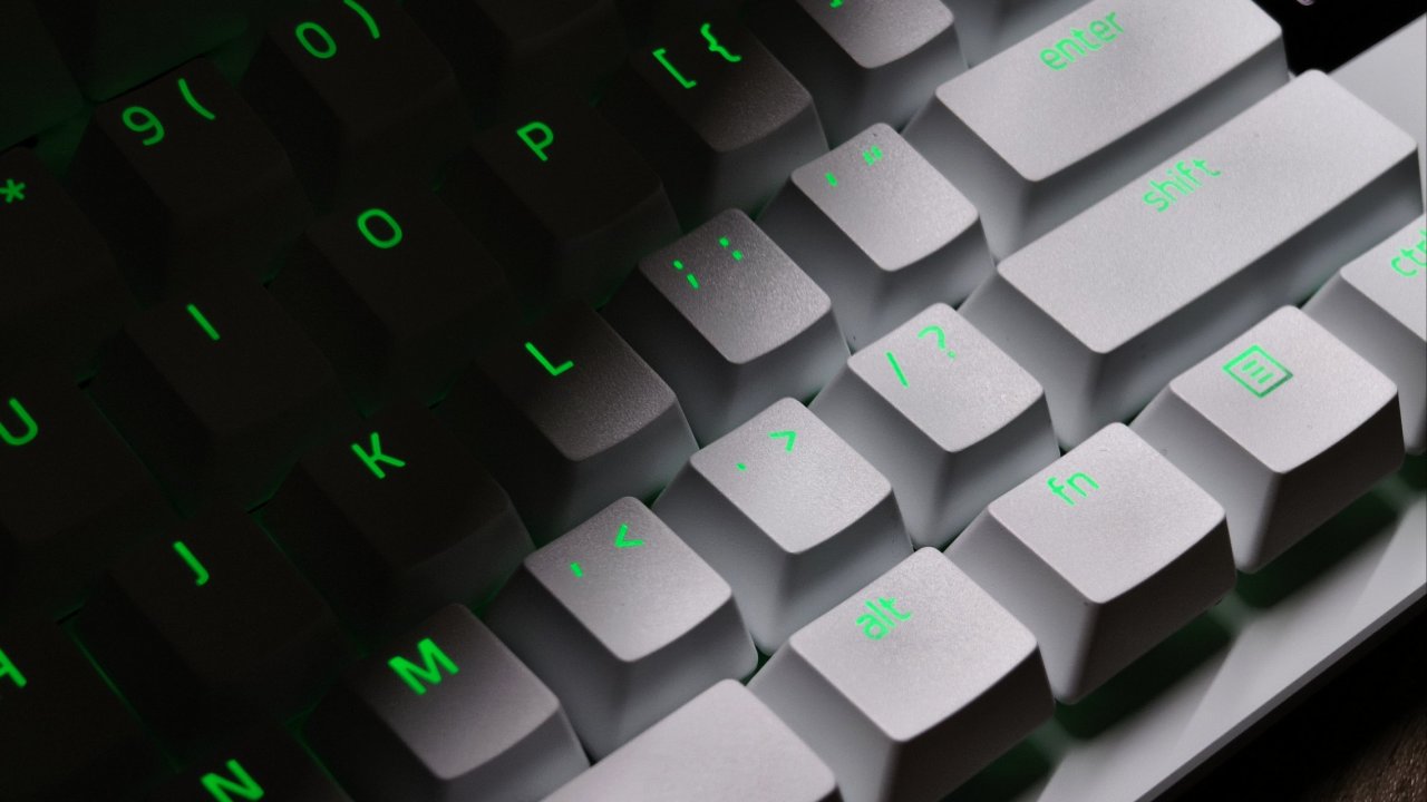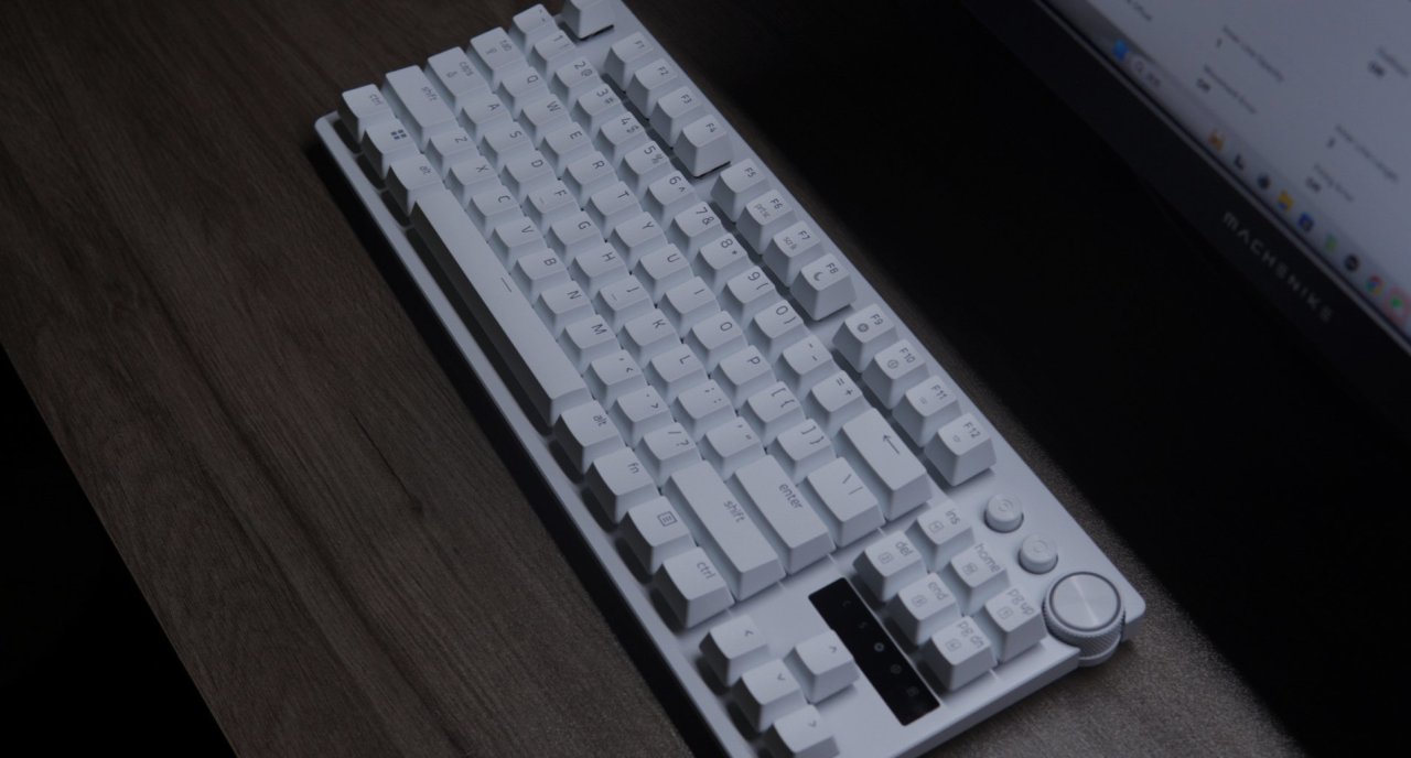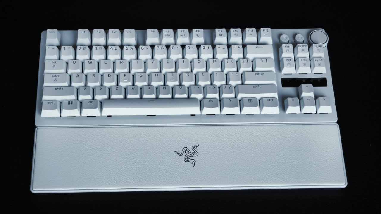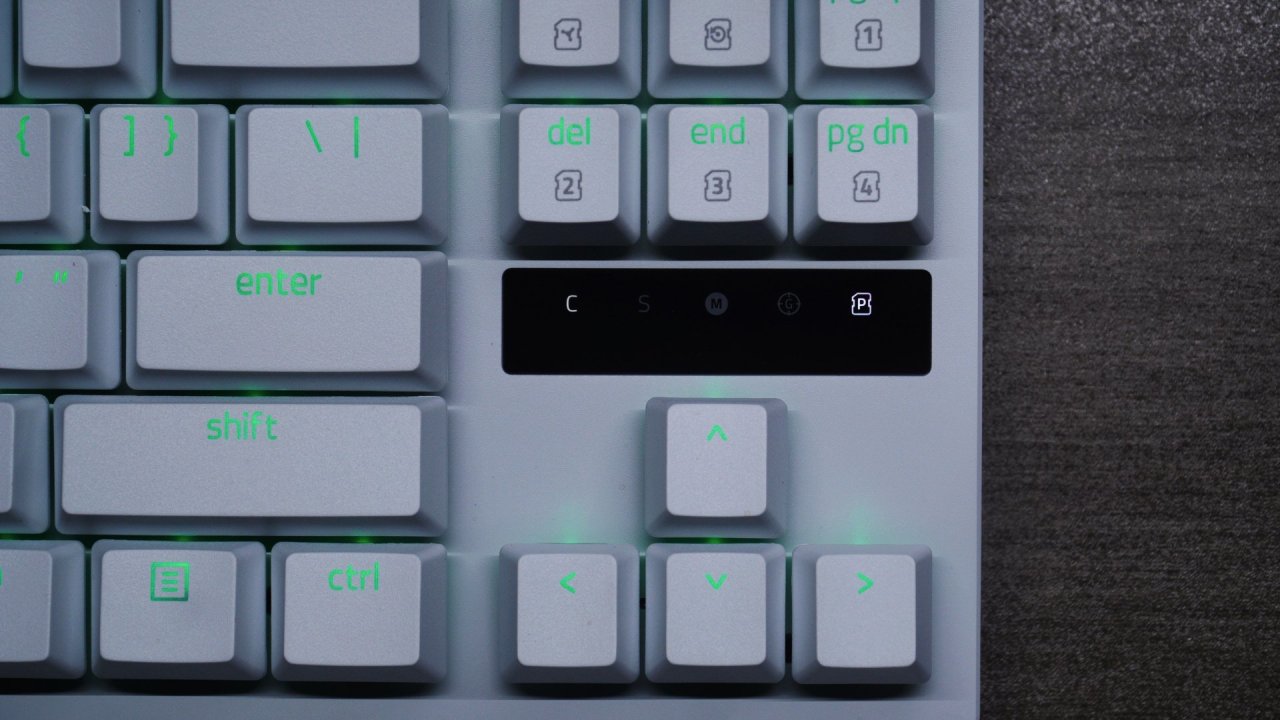 其实说实话一开始我以为这把键盘的键帽是ABS,毕竟ABS的灯光效果更好嘛,但是没想到他这回用了PBT材质,看来说实话雷蛇已经下定决心了,这把键盘的定位就是主打游戏。PBT材质的优点大家都知道嘛,那就是耐用并且不打油,使用寿命很长。并且这款键帽你是能摸的出来的,表面的磨砂质感很重,PBT含量很高,不是那种廉价的PBT键帽