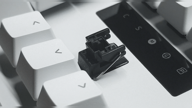 这里说一下哈,大家可以会对0.1MM嗤之以鼻,毕竟磁轴的RT精度最低已经卷到了0.005。但说实话,打游戏我认为最重要的是一个稳定性,你别看磁轴现在确实光鲜亮丽,都在卷,但实际上还是会被温度,磁场等各种方面影响,相信大家磁轴键盘刚到手都得各种校准吧,光轴不用,因为光轴它的技术原理不同,光轴是利用光学感应触发按键。按下按键时,轴体内的遮光片阻断红外光信号,系统识别为“按键触发”,松开后光路恢复,信号断开。
